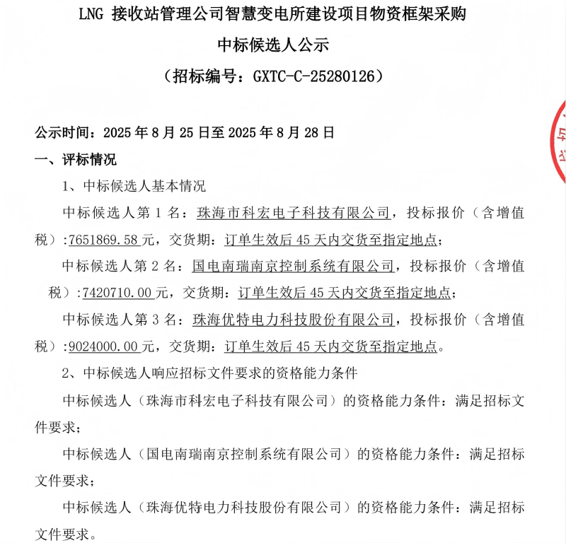 近日,在國(guó)家管網(wǎng)集團(tuán)深圳天然氣有限公司--LNG接收站管理公司智慧變電所建設(shè)項(xiàng)目招標(biāo)中,